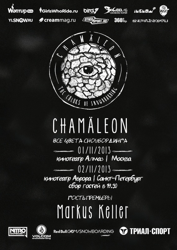 В названии обыграно животное хамелеон с его удивительной способностью к адаптации к окружающей среде. Во время съемок для лучших кадров и лучшего катания Маркус со съемочной командой посетили самые лучшие сноуборд споты планеты. Подобно тому, как хамелеон меняет цвета, Маркус, как никто другой, адаптируется к новому путешествию, ландшафту и новой миссии, будь то беккантри в австрийском Арльберге, хели на Аляске или Новой Зеландии, уличное катание в Хельсинки, рассекание паудера между деревьями в Японии, парковое катание в Lake Tahoe или пайп в швейцарском Лааксе. CHAMäLEON. Потому что это настоящая радость, потому что это сноубординг.